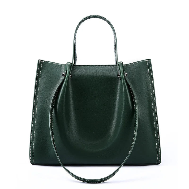 Crafted from smooth vegan leather, it’s soft to the touch but strong enough to keep its shape. Dual top handles make it easy to carry by hand or on the shoulder, while the minimal interior keeps things simple and light.
